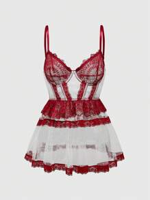 Vestito da lingerie in cami a rete a pois con patchwork in pizzo a blocchi di colore per donne