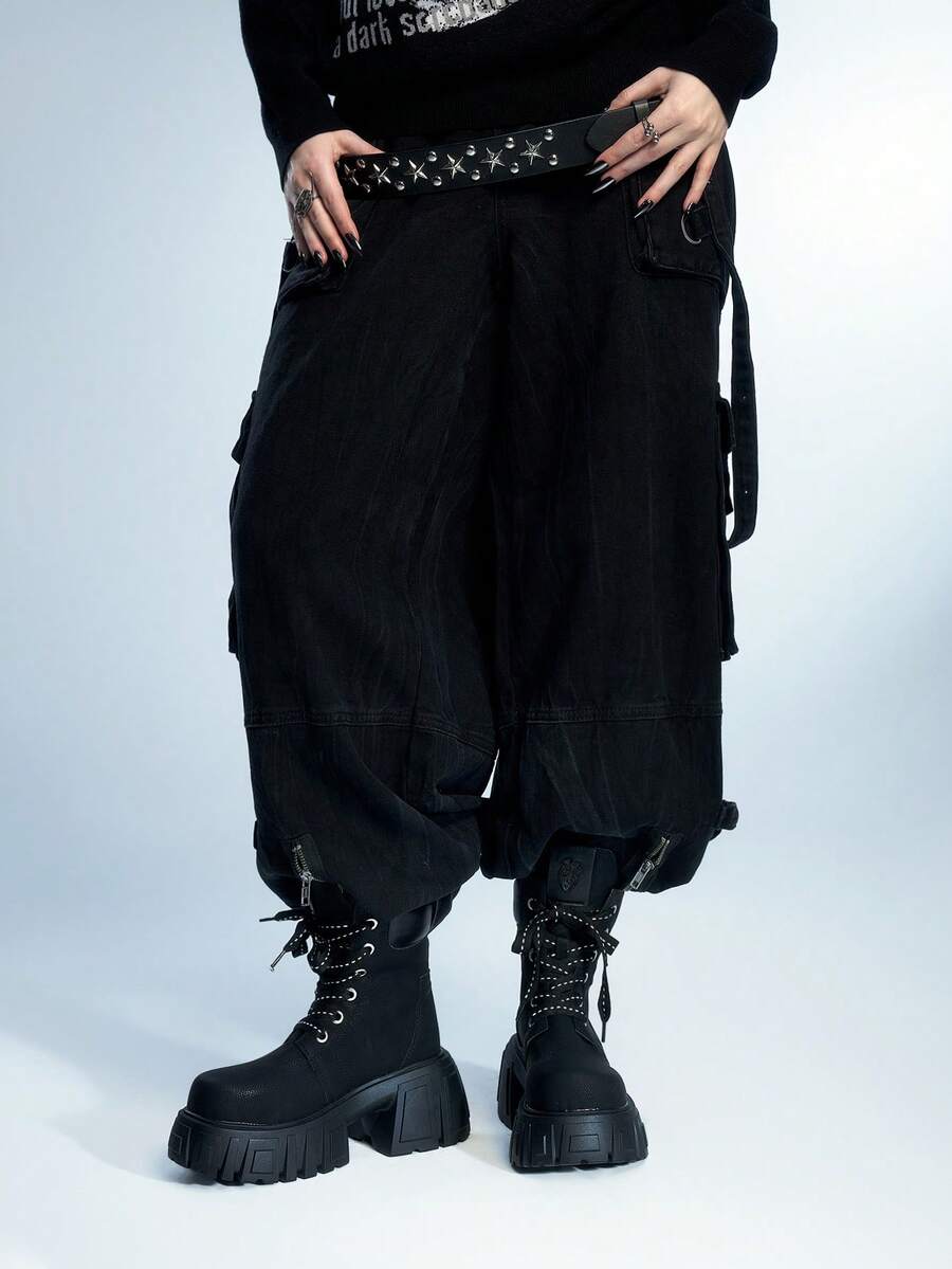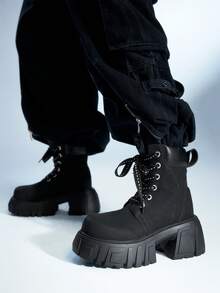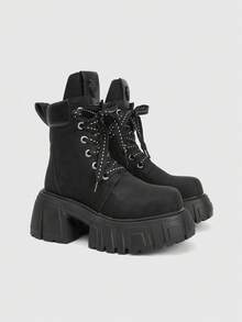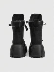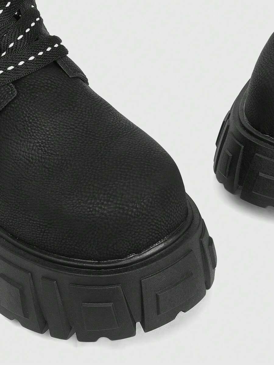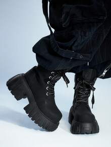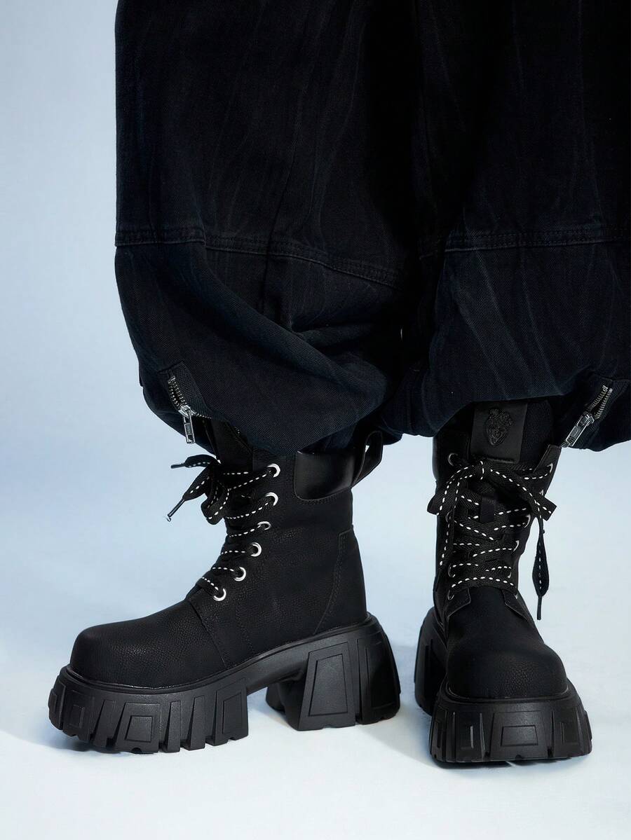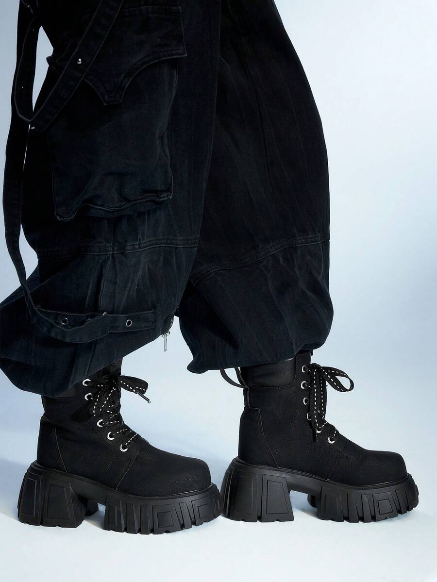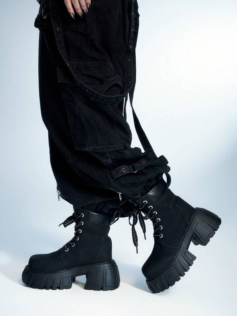 Stivali da motociclista da donna in stile punk gotico scuro, con lacci, suola spessa e platform, stivaletti alla caviglia e stivali corti con rialzo interno