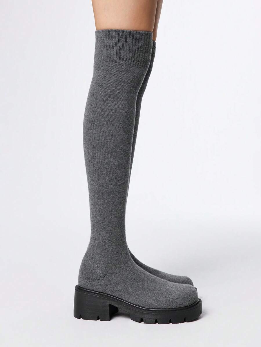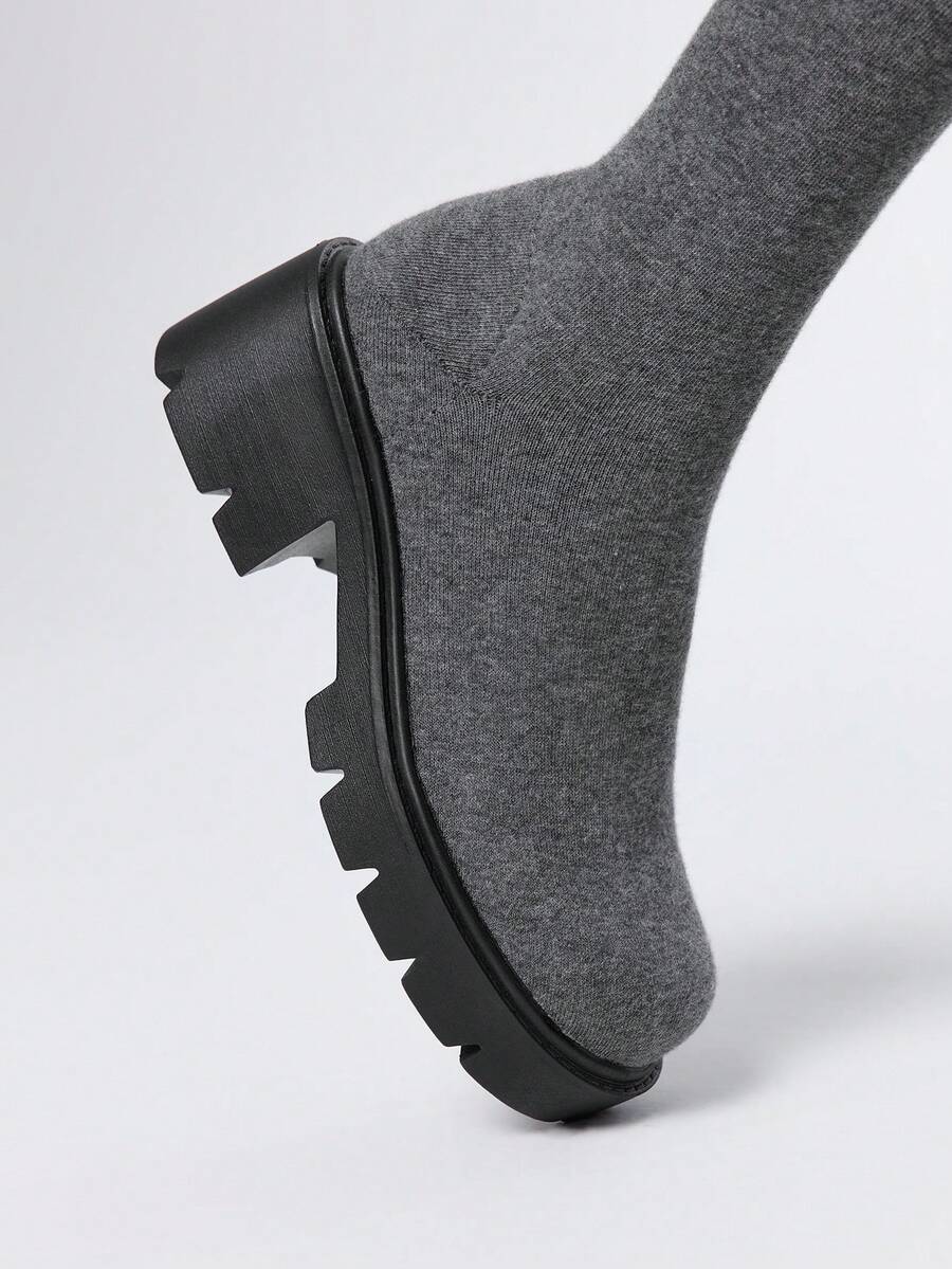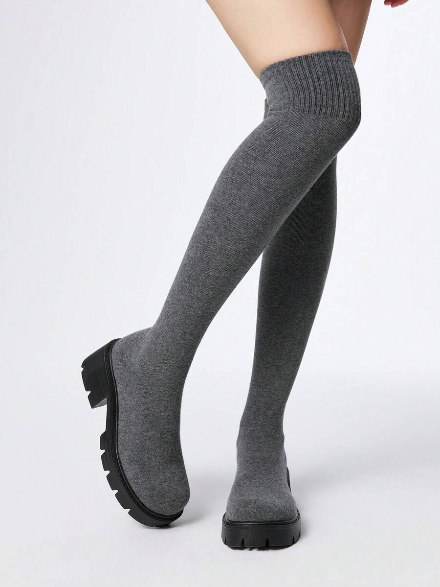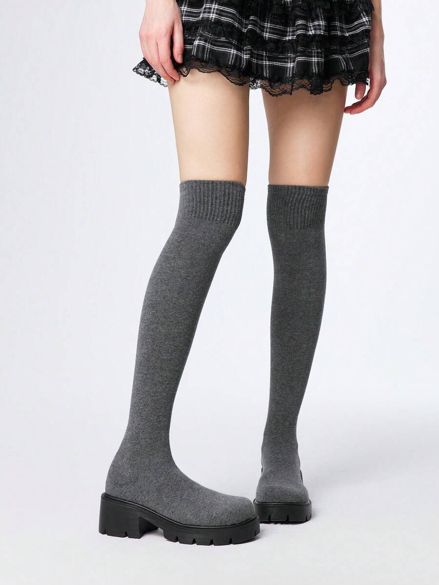 Stivali da donna in stile dark rock punk goth, con elastico, stivali al ginocchio con suola platform e spessa