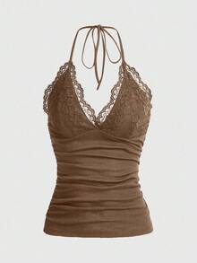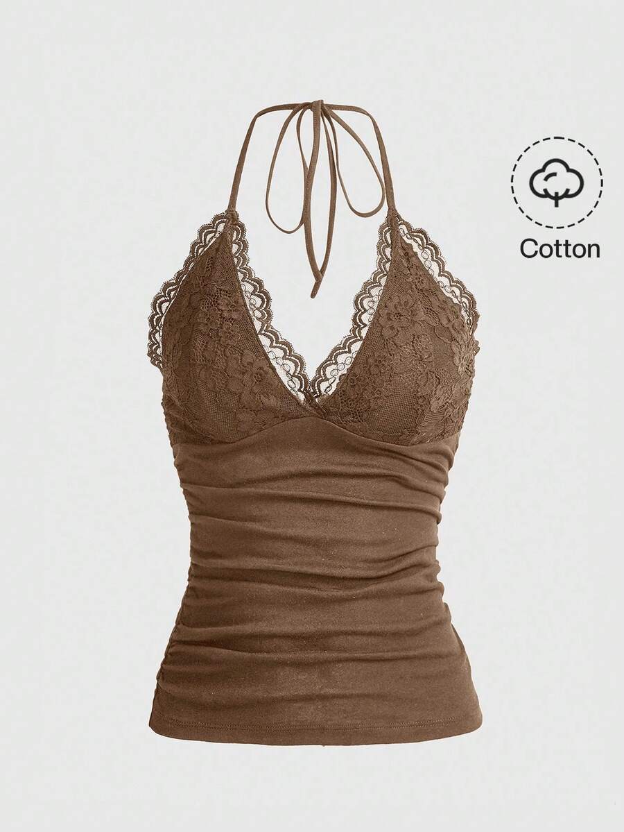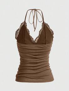Canotta da donna alla moda e sexy con bordo in pizzo e schiena scoperta