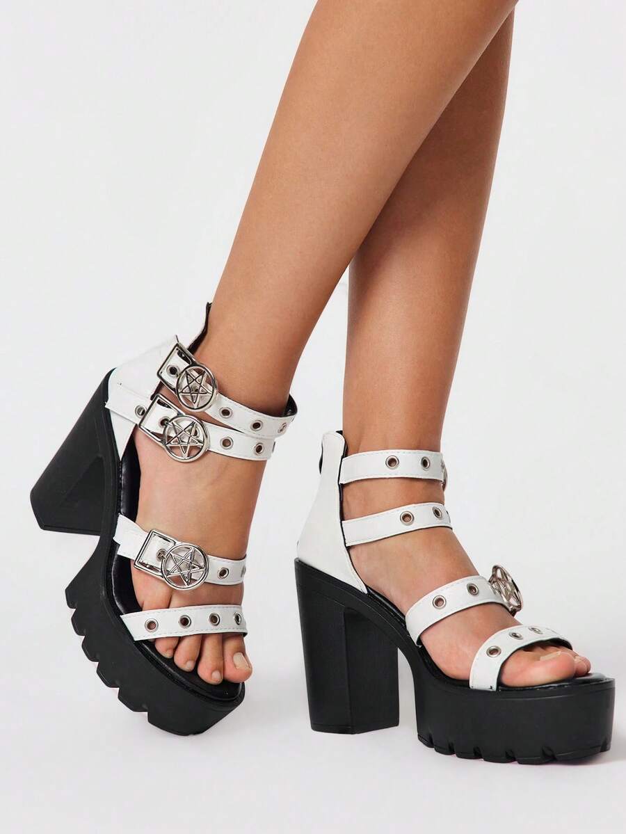 Goth Sandali con plateau da donna in stile gotico, sandali con cinturini in stile punk rock, con tacco alto e plateau