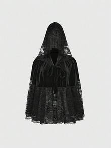 Goth Mantella con cappuccio in velluto e pizzo di lusso stile gotico, patchwork, per Ognissanti, da donna