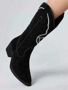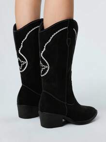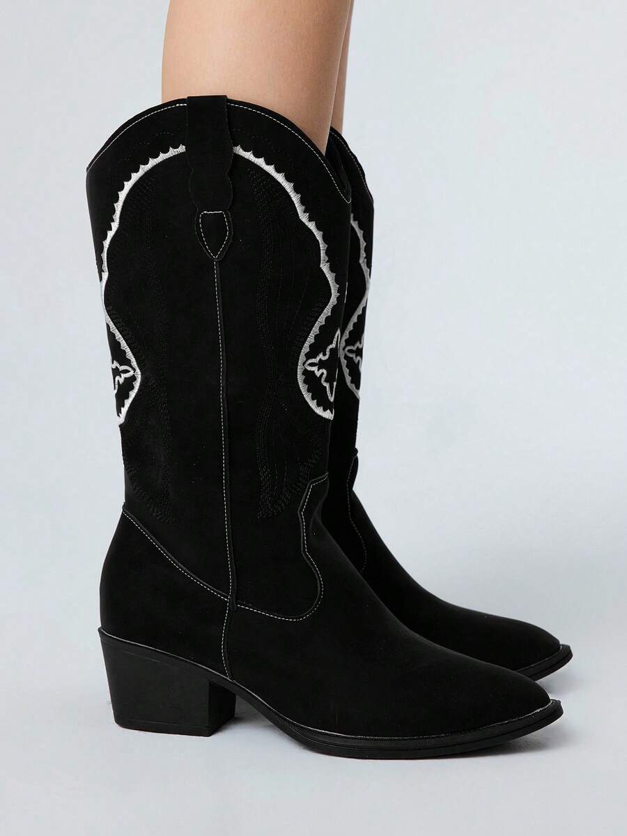 Stivali alti da donna stile gotico rock punk con ricamo, taglio a V, tacco chunky, stivali alla caviglia, Ognissanti