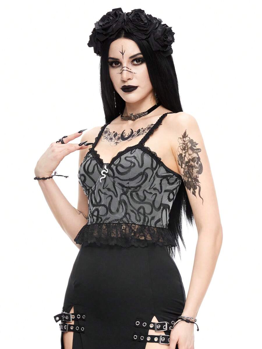 Goth Top canotta estivo da donna con stampa serpente gotica e ricamo