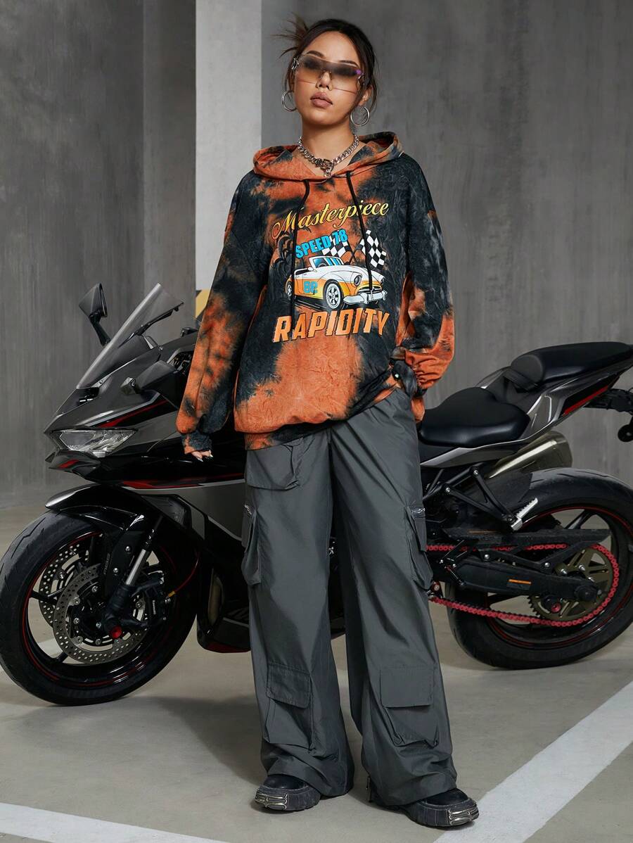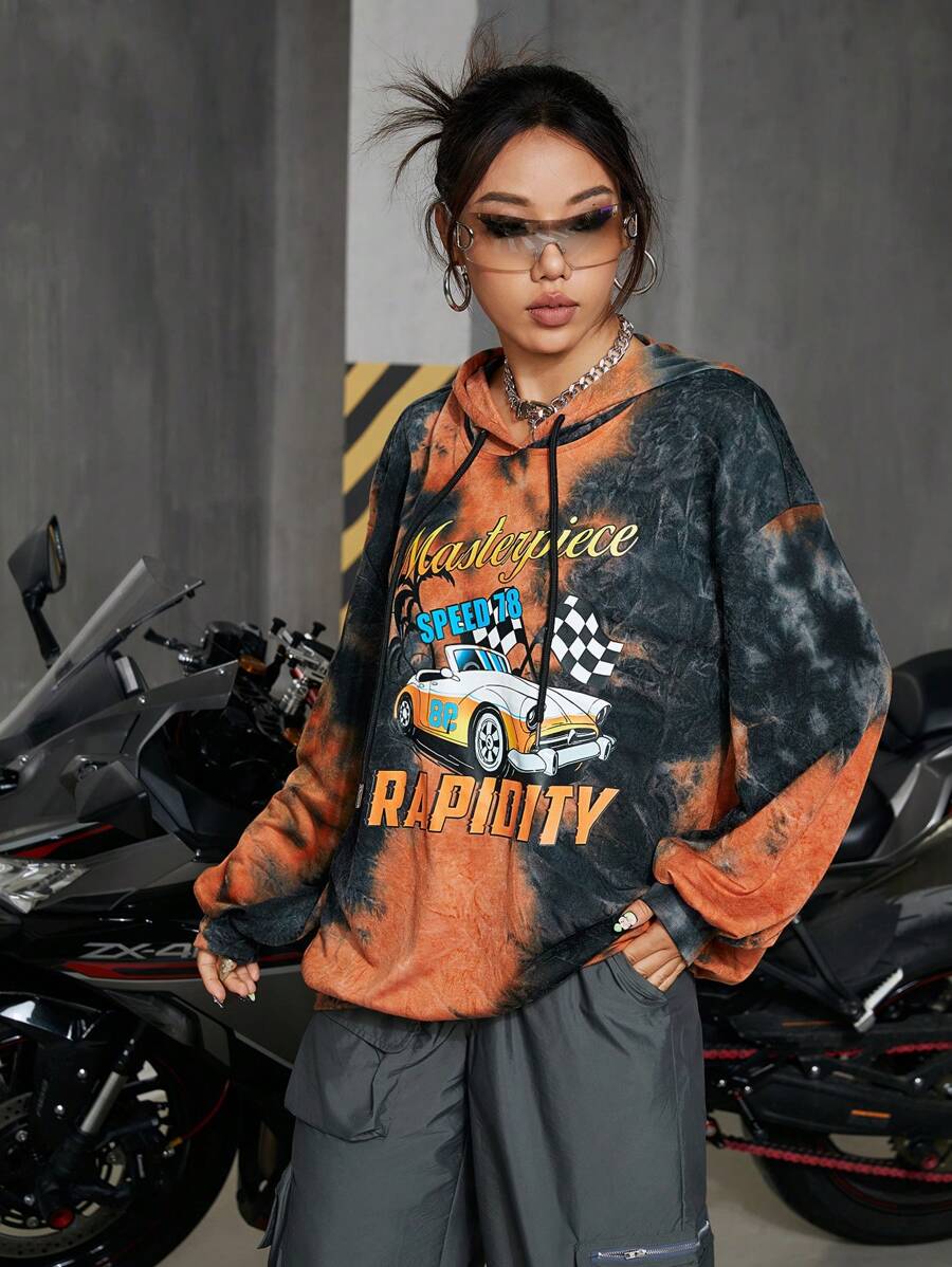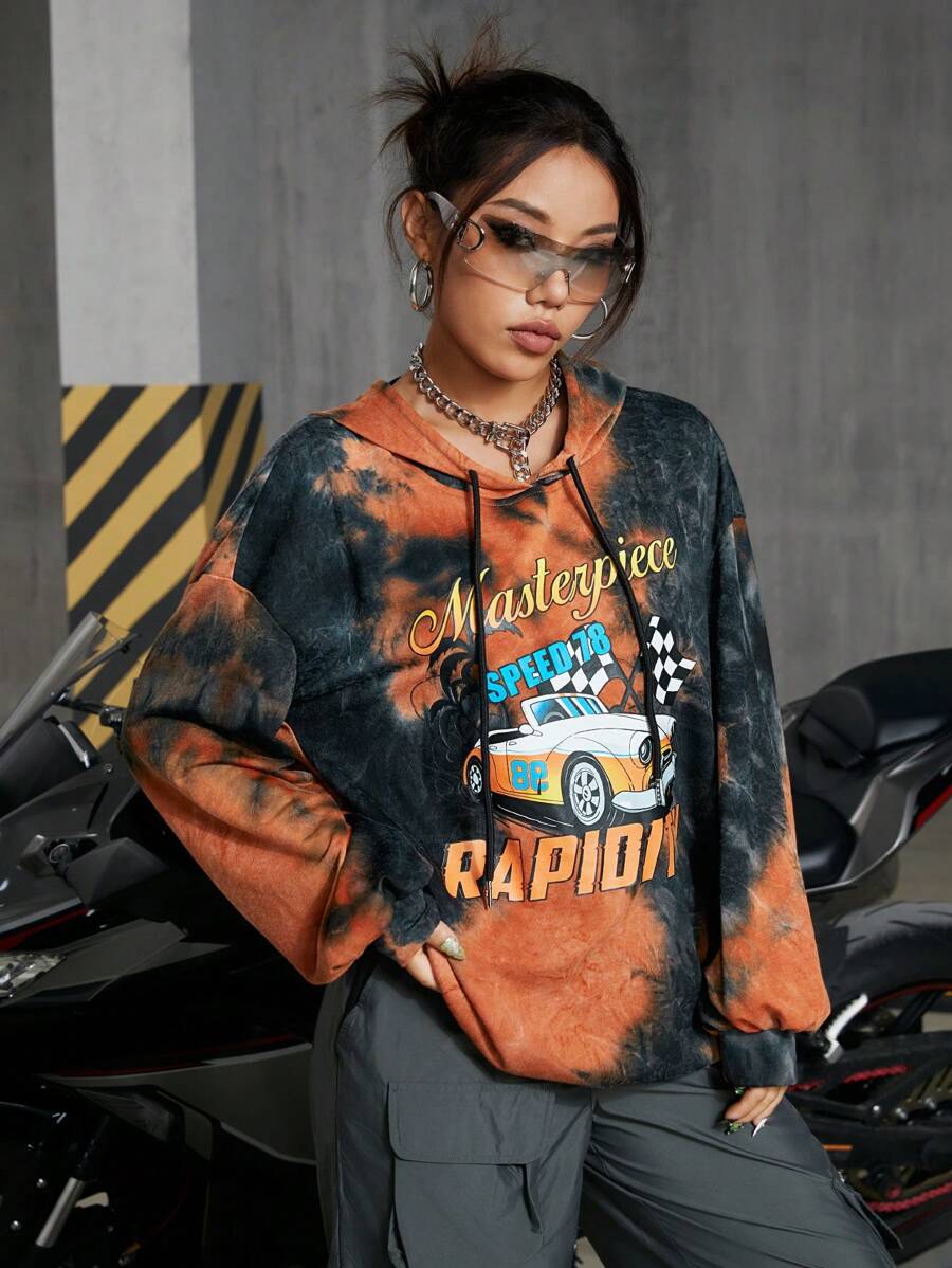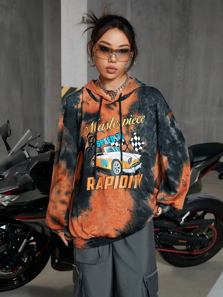 Felpa Con Cappuccio Da Donna Con Stampa Lettere E Design Tie-dye