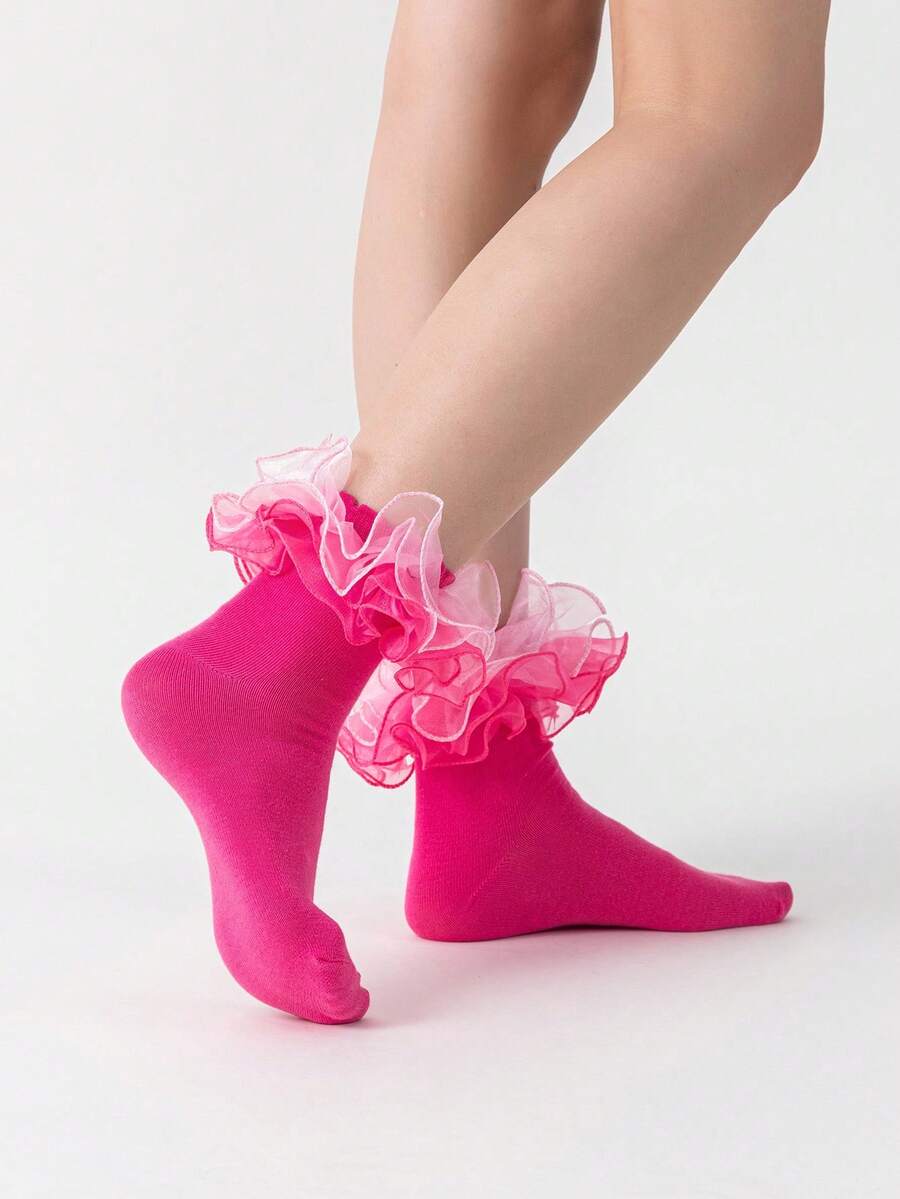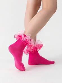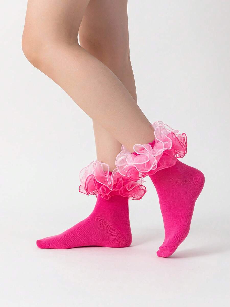 Calze a metà polpaccio da donna con bordo arricciato, doppia lacci per l'uso quotidiano