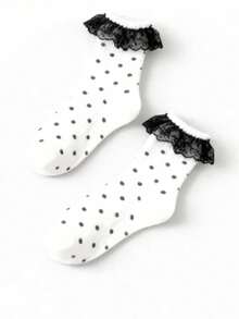 Calze alla caviglia da donna con bordo a volant, bordo con doppio pizzo