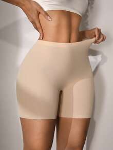 Mutandine a vita alta senza cuciture color albicocca da donna - Biancheria intima casual e comoda in tessuto elastico medio, design semplice