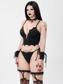 Goth Set bikini gotico da donna con top canotta senza maniche con scollo a V traforato e slip, adatto per spiaggia, feste, Ognissanti
