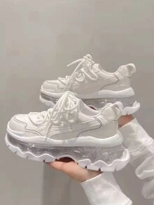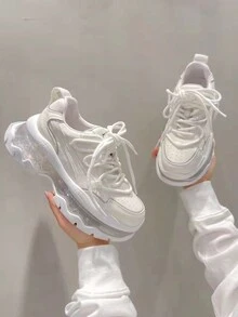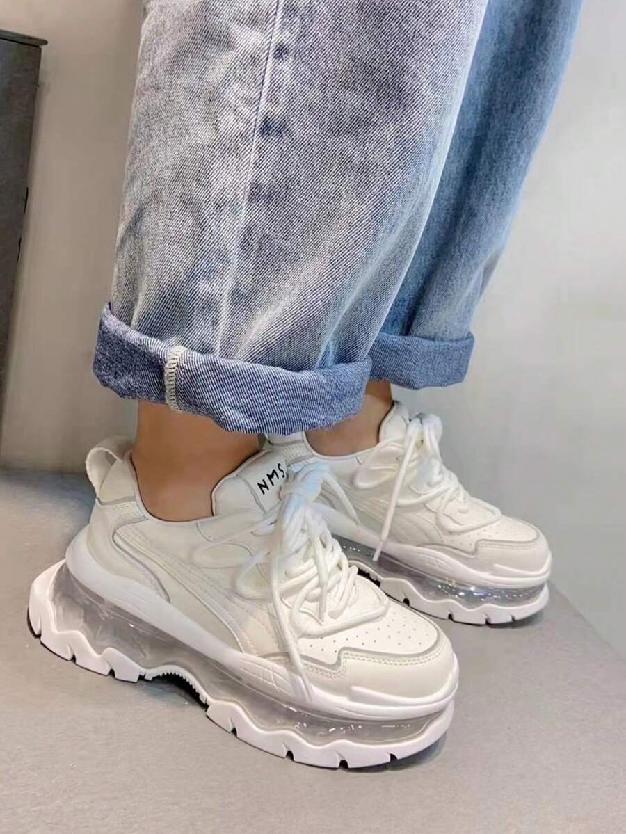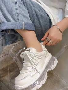 Sneakers Trasparenti Con Zeppa E Suola Spessa Con Lacci In Stile Studentesco Da Donna, Perfetti Per L'autunno E L'inverno