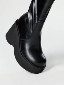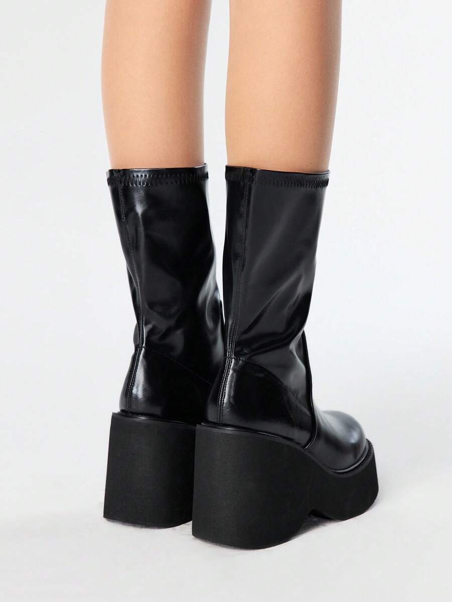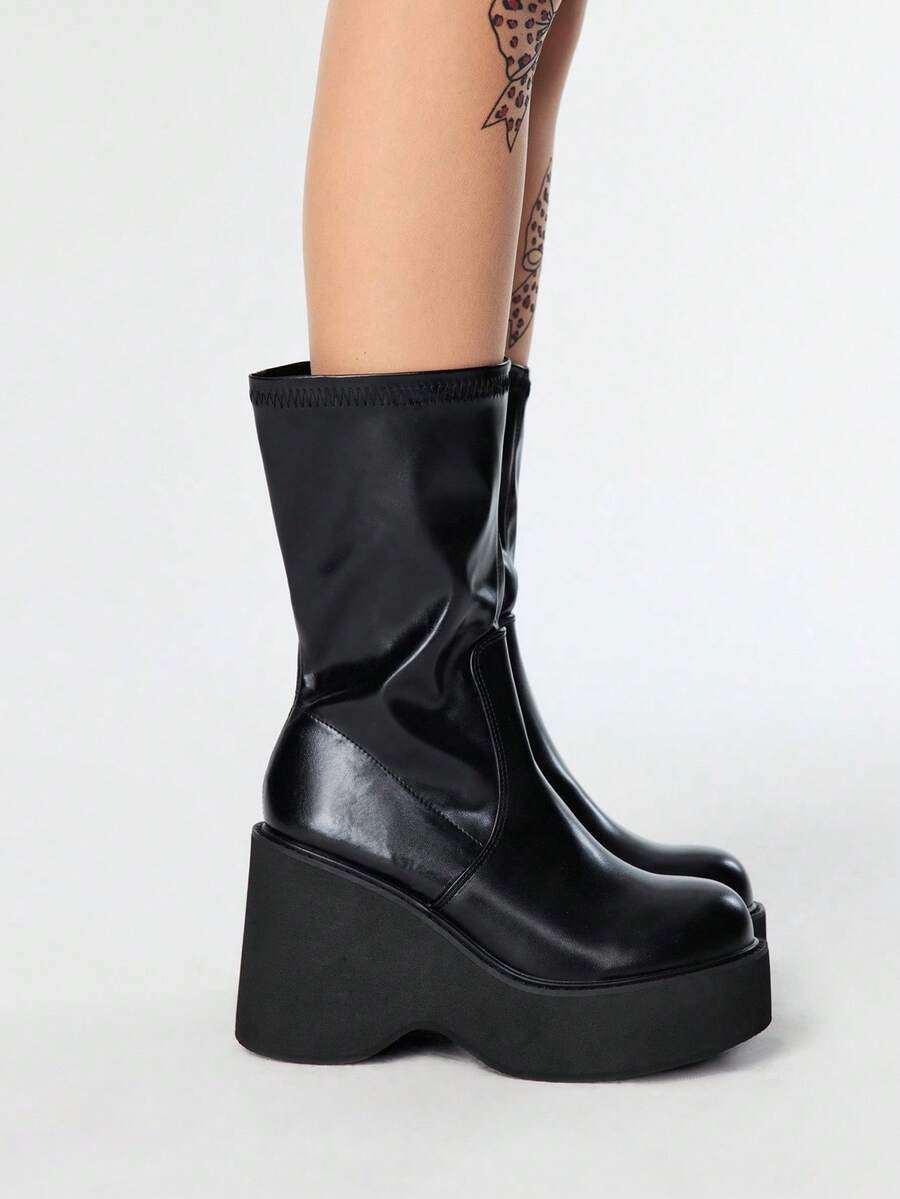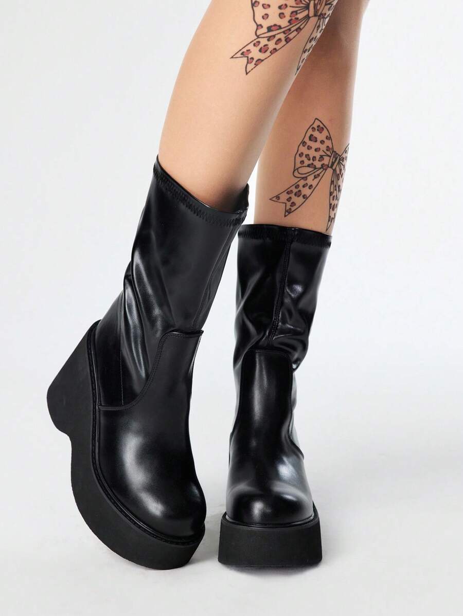 Goth Stivali alla caviglia da donna con suola spessa, neri opachi, stile punk rock, tacco alto, moda minimalista, comodi ed eleganti, punta tonda, slip-on, stile gotico, stivali da combattimento, adatti per Ognissanti