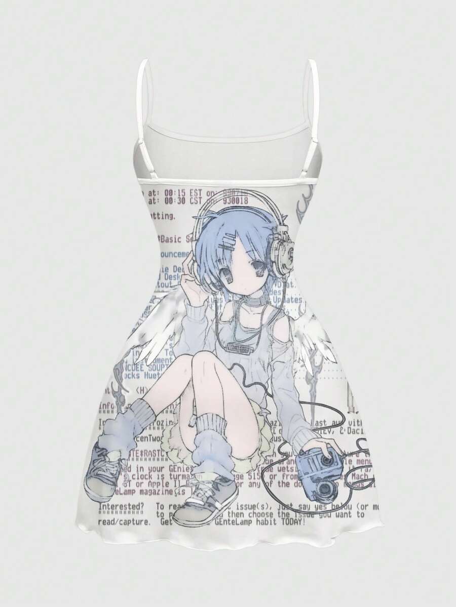 Abito estivo da donna con stampa di personaggi anime e slogan, vita stretta, mini