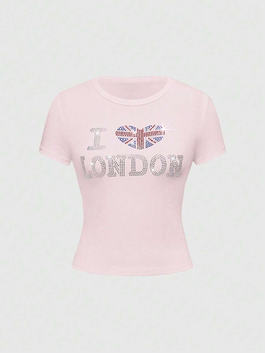 J-Fashion Maglietta aderente da donna con stampa mimetica, bandiera e strass stile Y2K Baddie