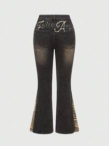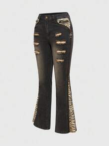 Grunge Punk Jeans skinny a vita bassa da donna con stampa vintage a patchwork e motivo zebrato, stile Y2K Baddie