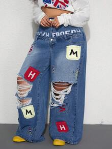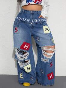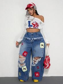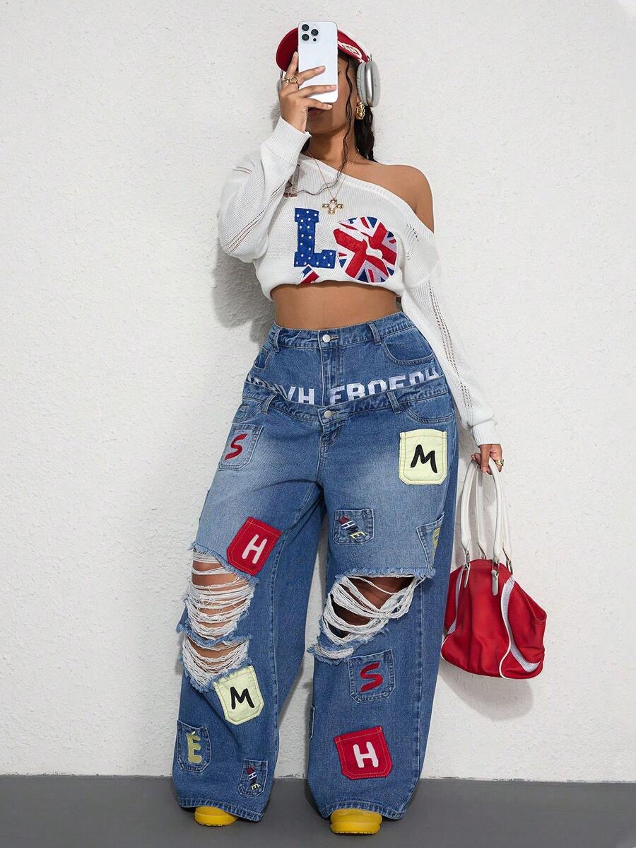 Street Life Jeans in stile casual da strada Y2K, con design ricamato sulle tasche e doppia vita, vestibilità morbida e oversize