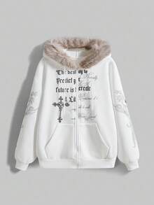J-Fashion Felpa con cappuccio a maniche lunghe con stampa grafica vintage americana stile Y2K consumata
