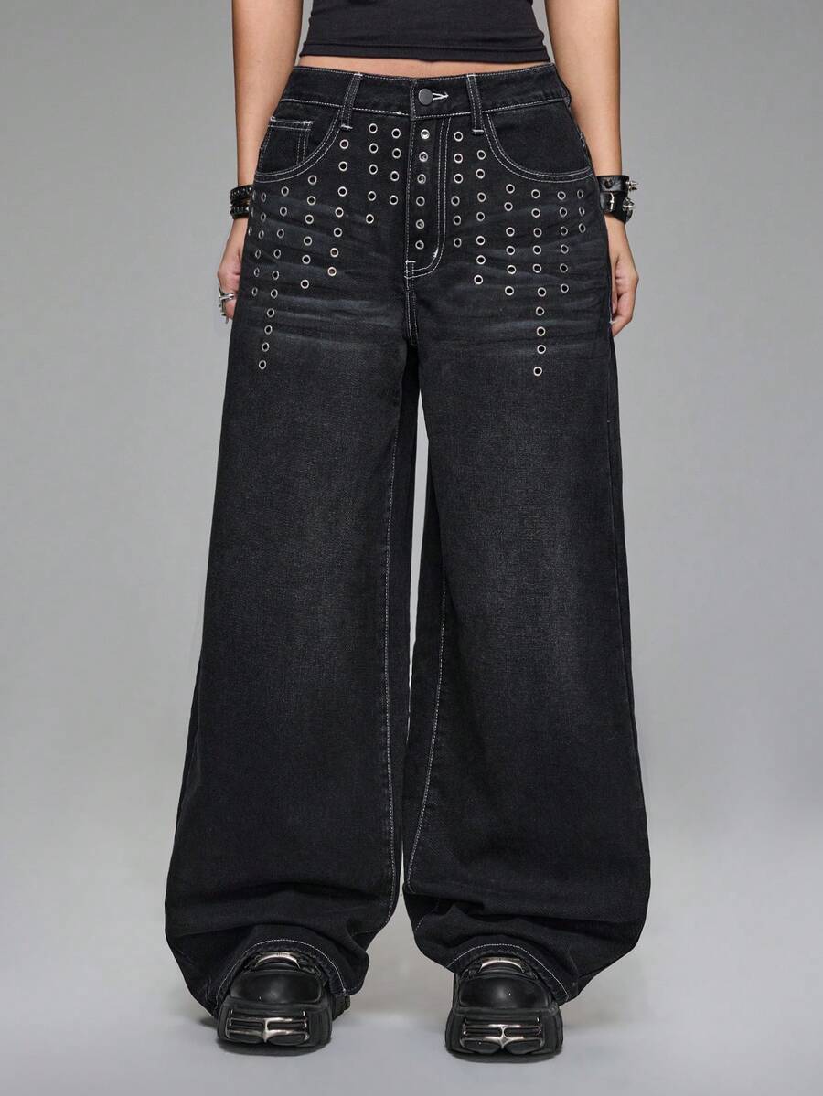 Grunge Punk Jeans ampi a vita super bassa con effetto vissuto e finitura in stile Y2K per donne