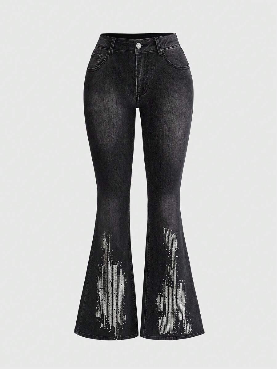 Outfit da festival musicale indie Y2K, jeans skinny a vita bassa con ricamo di perline