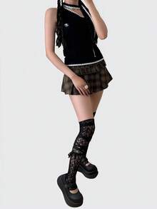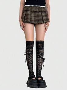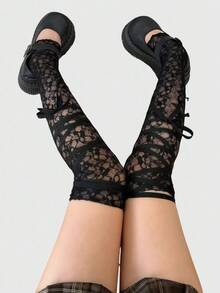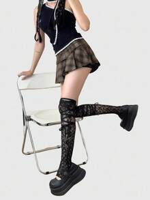 Anime Calze asimmetriche stile punk Y2K con fasce incrociate sopra il ginocchio, calze lunghe a tubo di colore solido regolabili per donne, adatte per casual, appuntamenti, college, festival musicali, ecc.