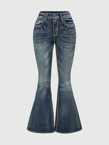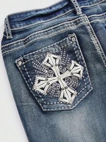Jeans a zampa con ricamo della bandiera americana in stile retrò Y2K per donna