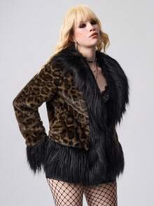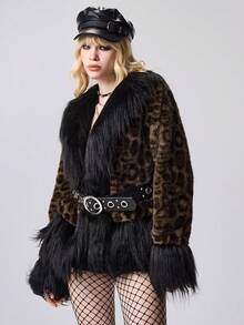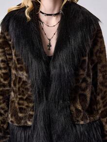 Grunge Punk Cappotto in finta pelliccia con colletto in finta pelliccia leopardata in stile retrò Y2K, giacca oversize in pelliccia sintetica da donna
