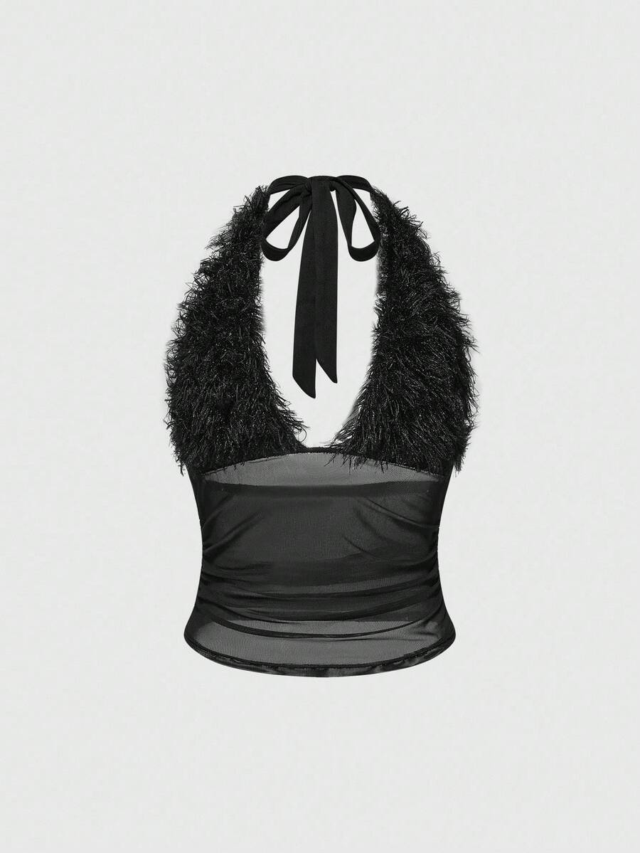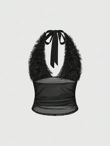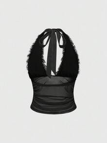 Grunge Punk Canotta donna Y2K sexy in stile patchwork, con collo alto e semi-trasparente