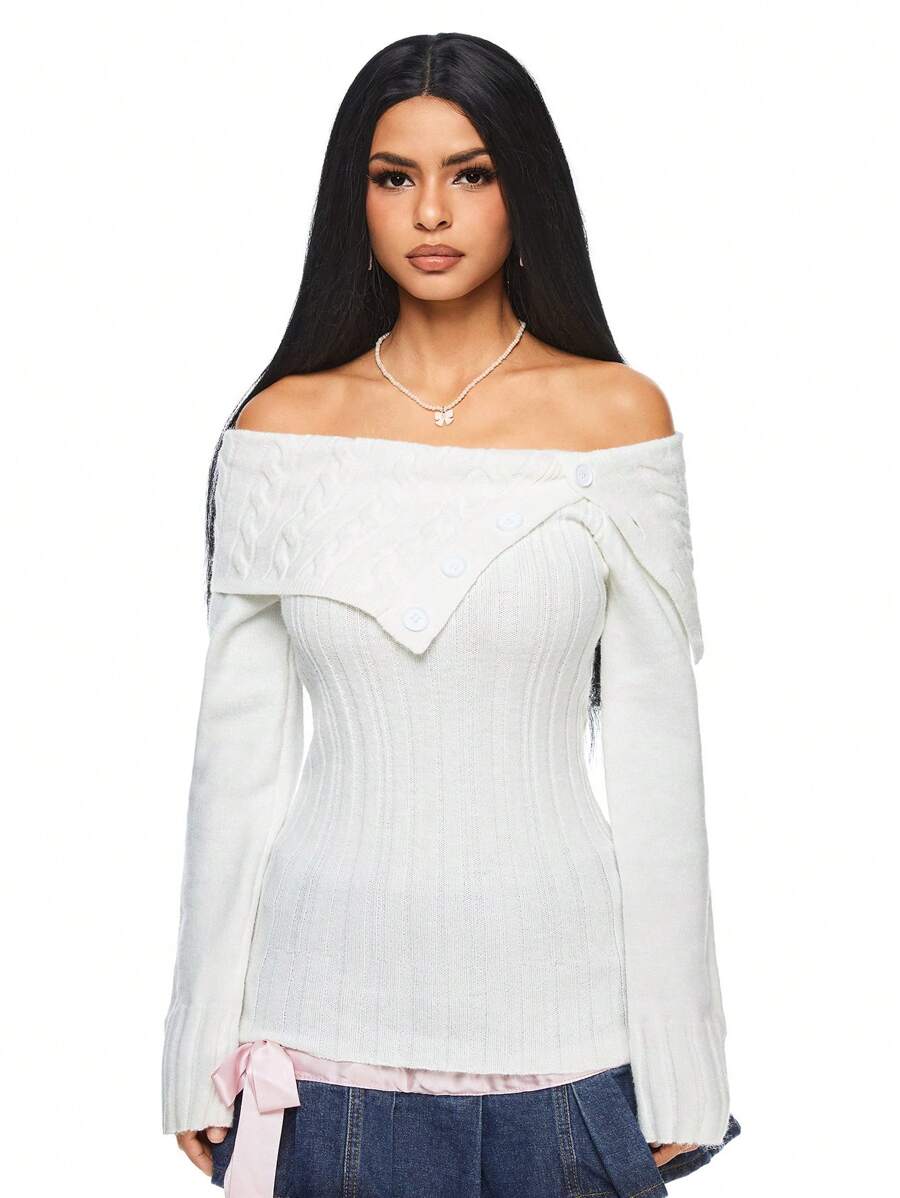 Maglione corto a costine con spalle scoperte, stile Y2K