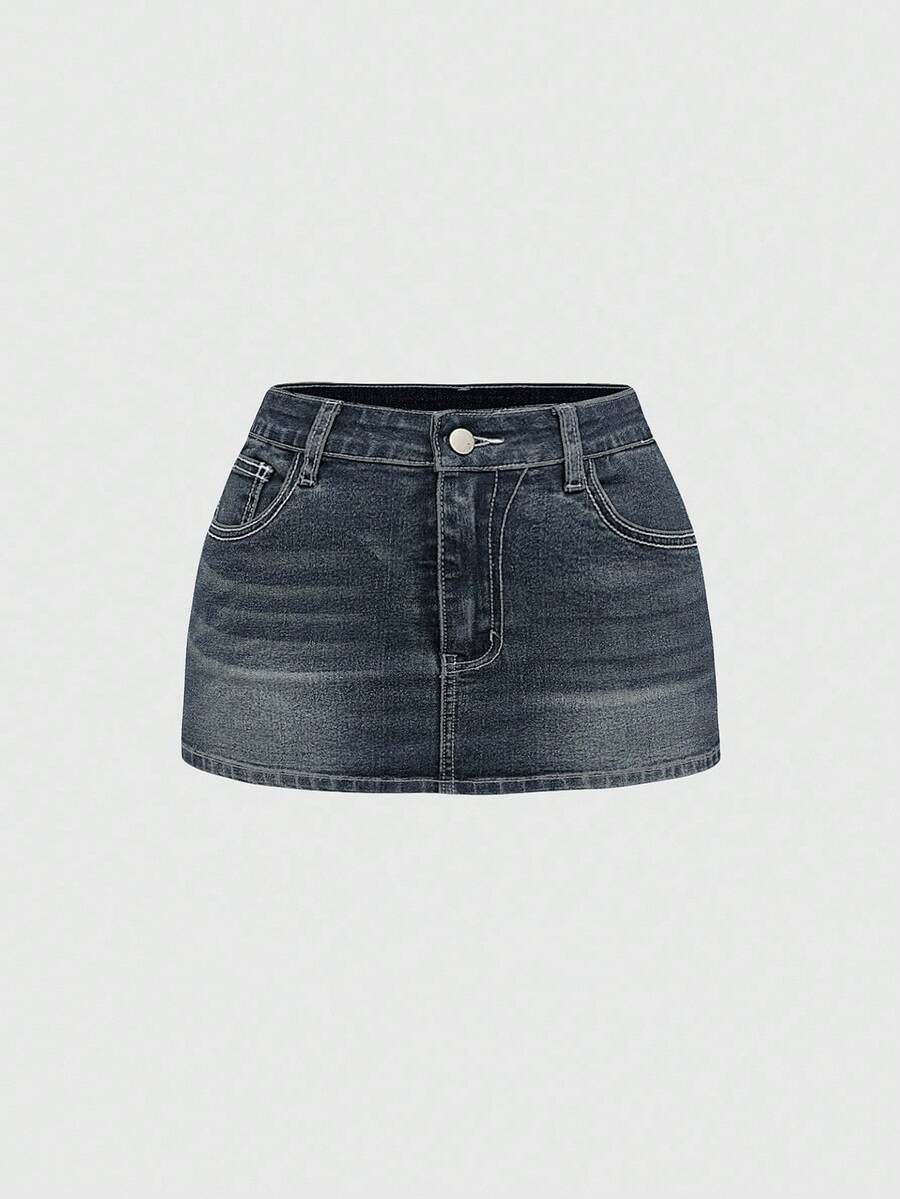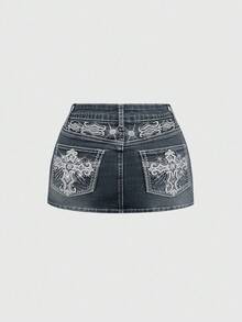 Grunge Punk Completo vintage Y2K: top corto a corsetto, minigonna di jeans con tasche, ricamo a croce e ali, taglie comode