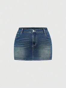 Fairycore Top corto vintage Y2K con ricamo a croce e ali, con tasche, Minigonna in denim aderente di taglia grande