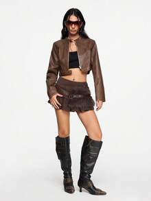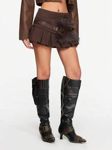 Grunge Punk Minigonna in denim vintage Y2K con patchwork, plissettata, effetto consumato e texture morbida