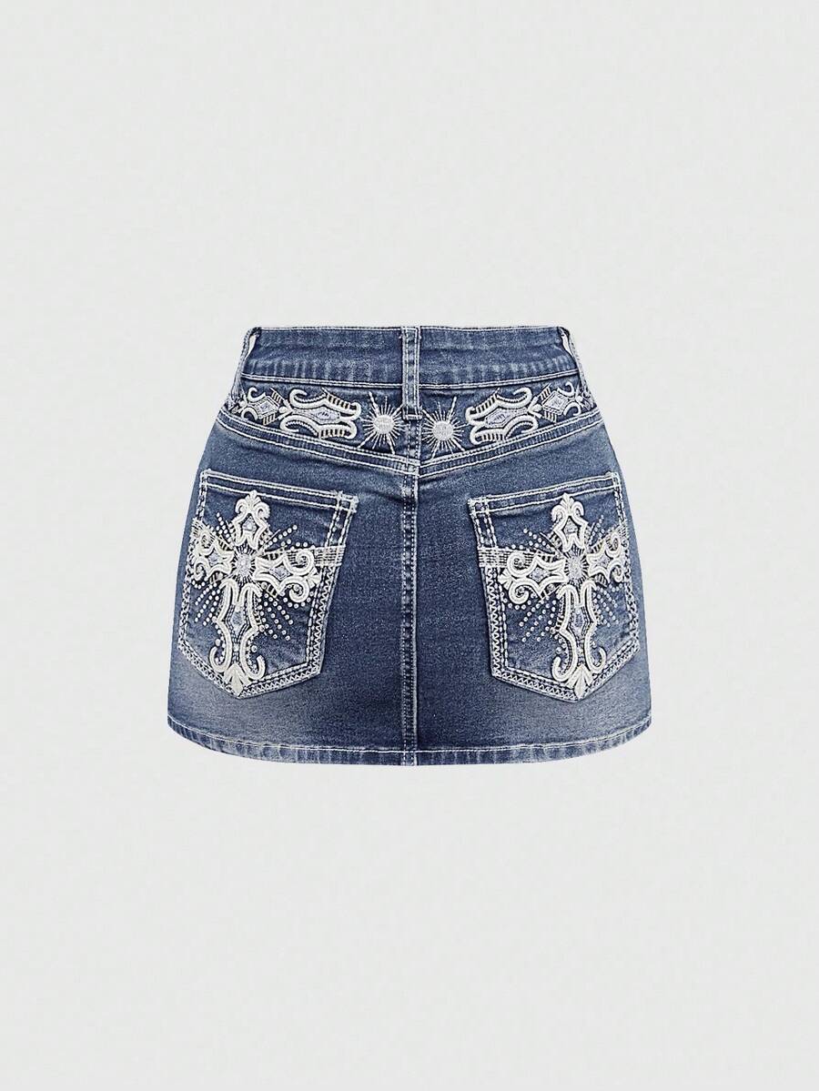 Grunge Punk Minigonna vintage Y2K a vita alta con tasche, ricamo a croce e ali (include leggings)