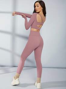 Leggings da yoga Collant sportivi senza cuciture a vita alta con controllo di pancia con ampia cintura