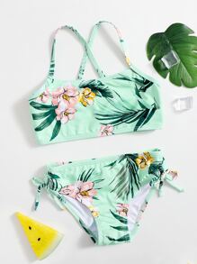 Set di bikini a incrocio floreale per ragazze giovani, per l\'estate in spiaggia