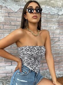 Top a tubo a bandana con effetto zebra