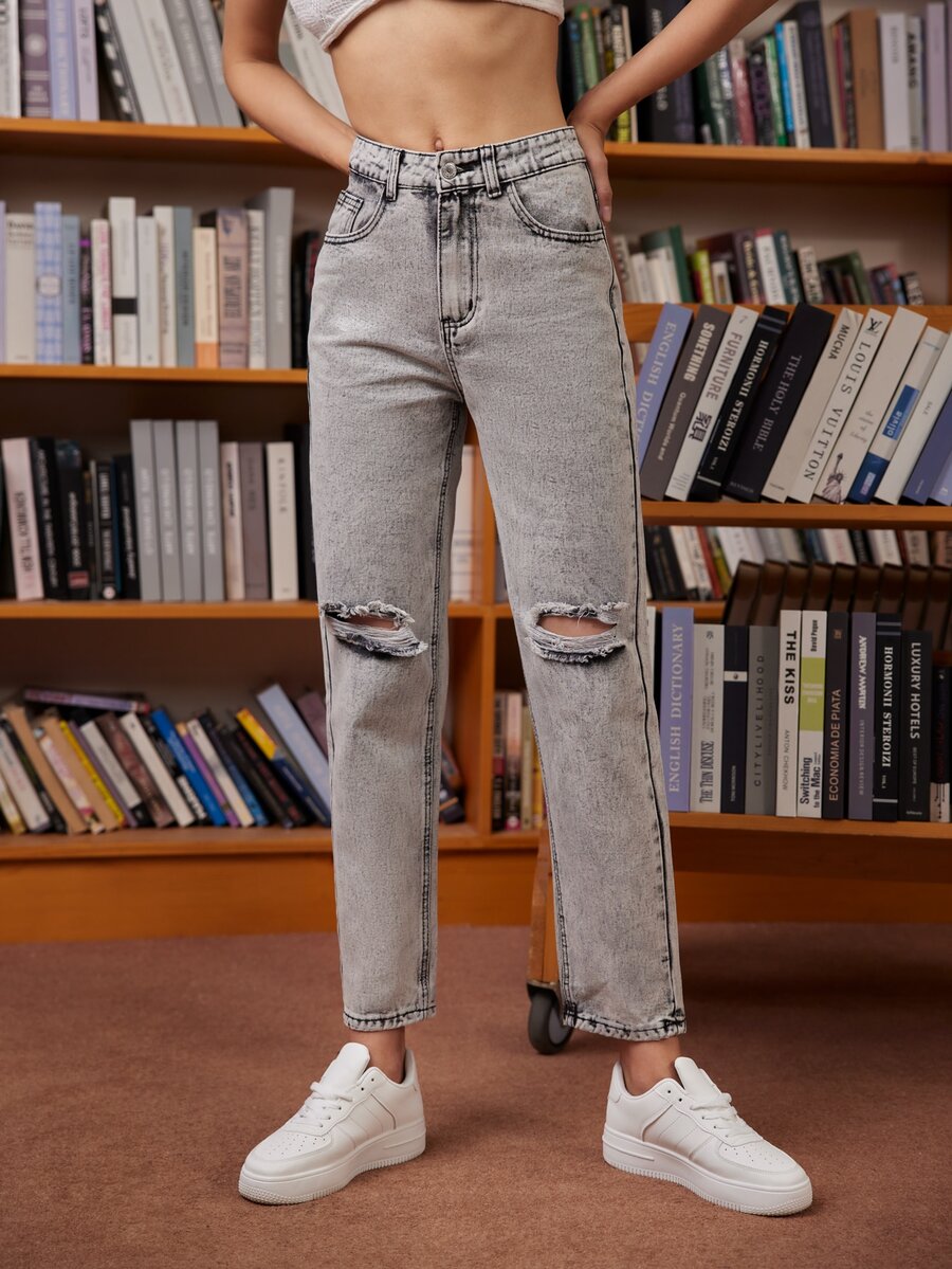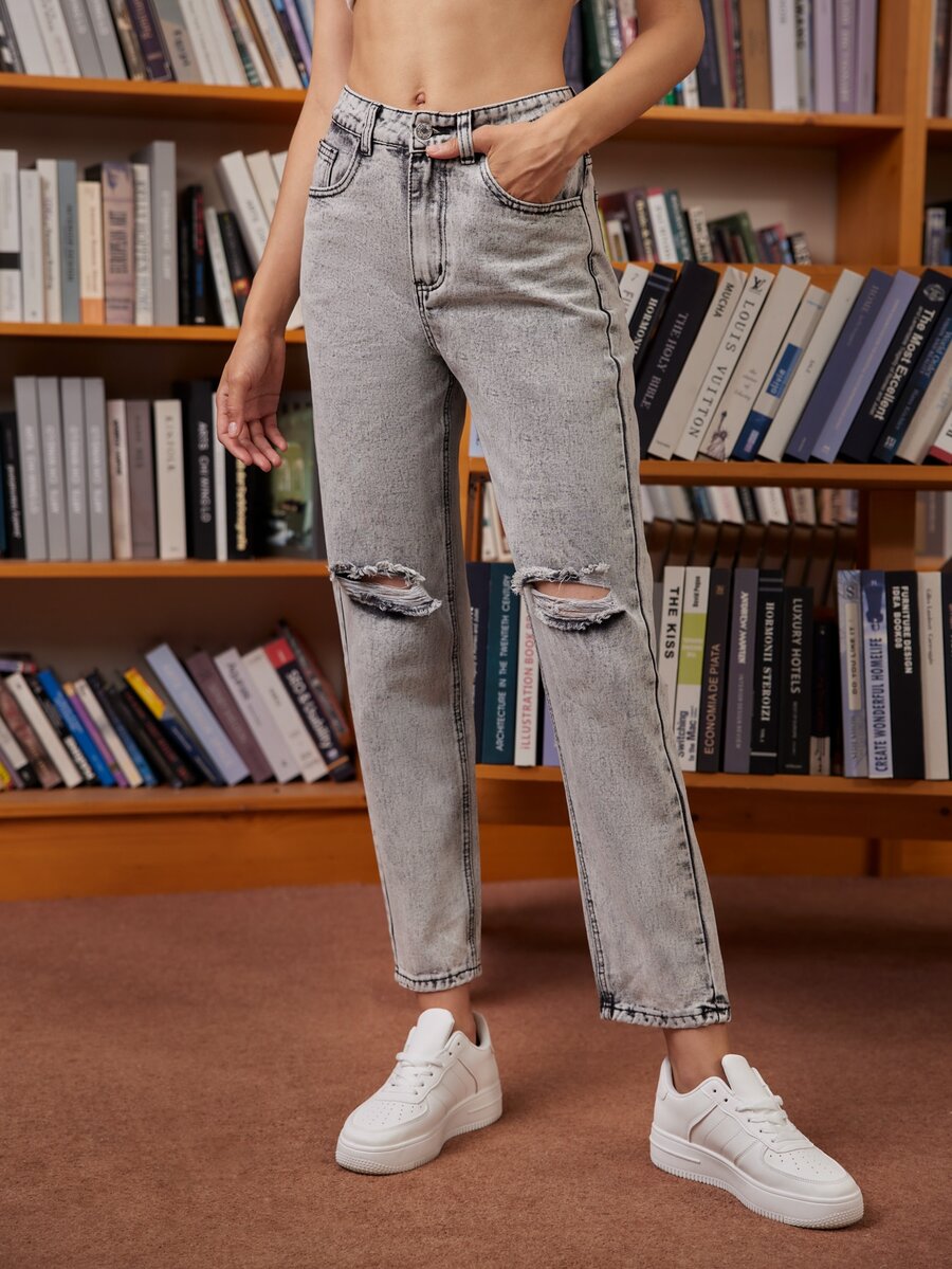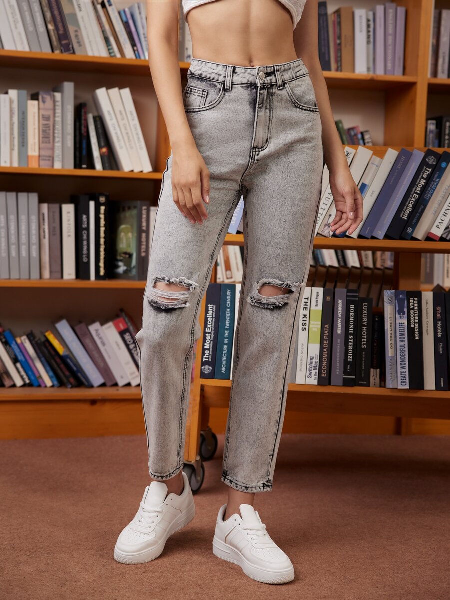 Jeans strappati con zip