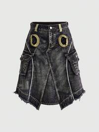 Grunge Punk Gonna in denim monocolore bordo grezzo