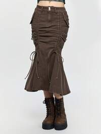Fairycore Gonna di jeans a vita ultra bassa stile retrò da elfo fatato Mori, con tasche cargo, marrone, stile sirena