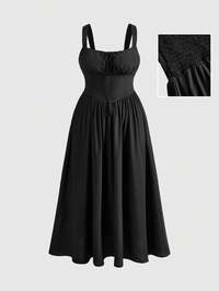 Hippie Vestito casual da donna con spalline a spaghetti, con arricciatura in vita e colore unito, taglie comode
