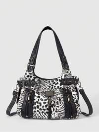 Grunge Punk Borsa casual da donna con stampa leopardata, borsa a spalla retrò, borsa a tracolla da pendolare, borsa da donna punk stile motocicletta