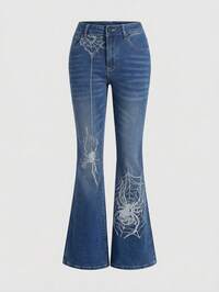 J-Fashion Jeans da donna retrò e sexy con ricamo di ragno in argento