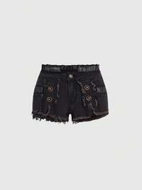 Grunge Punk Pantaloncini di jeans casual con orlo sfrangiato, vestibilità ampia, stile retrò Y2K, unisex