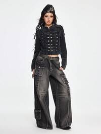 Grunge Punk Jeans vintage punk con grommet in metallo, a vita larga e gamba ampia