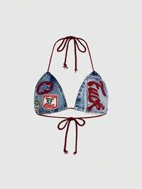 ROMWE Avant Top corto in denim sexy con lacci, logo vintage ricamato, stile Y2K per donne