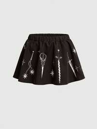 Goth Gonna a-line con stampa di stile gotico di martello meteora, spada, catena, forchetta per donne