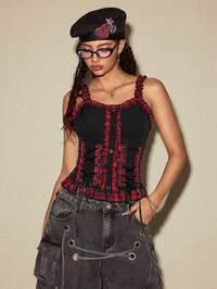 Grunge Punk Top senza maniche e schiena scoperta sexy da donna, colore nero, decorato con borchie, strass e nastri, adatto per l'estate, la spiaggia, la laurea, la Pasqua, i concerti, le vacanze a Nashville, i festival musicali, il rock