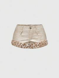 J-Fashion Pantaloncini di jeans aderenti in stile Y2K Shibuya Gyaru, con stampa leopardata, effetto hot stamping, vita super bassa e taglio retrò per le donne