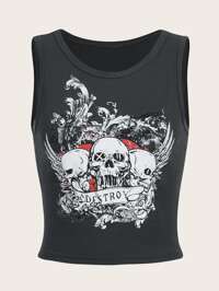 Grunge Punk Canottiera con stampa a teschio e lettera, per la scuola