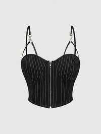 Goth Top estivo da donna con apertura frontale in a righe di stile gotico punk