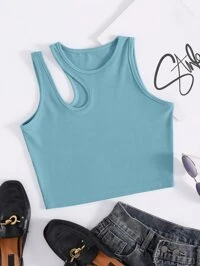 Top Canotta A Coste Con Spalla Aperta Tagliata Solida Informale Per L'estate