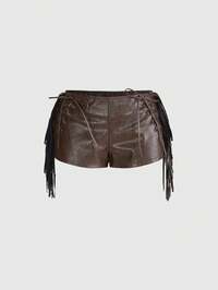 Grunge Punk Pantaloncini mini a vita bassa in pelle sintetica con frange, stile retrò da festival musicali e vacanze